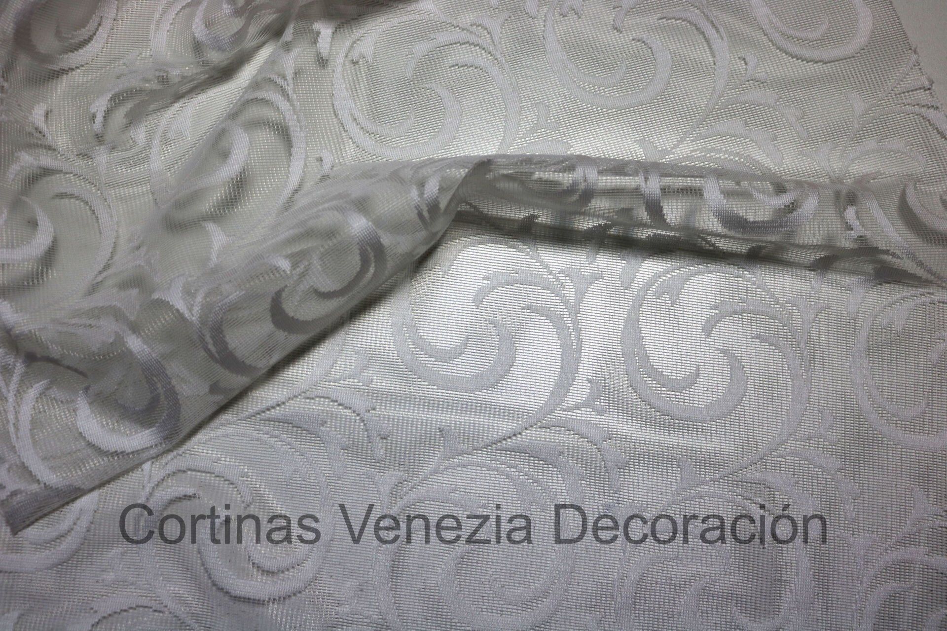 Tejido blanco de encaje. De estilo elegante, este tejido queda bien tanto en estor o panel como en cortina. De opacidad suave.