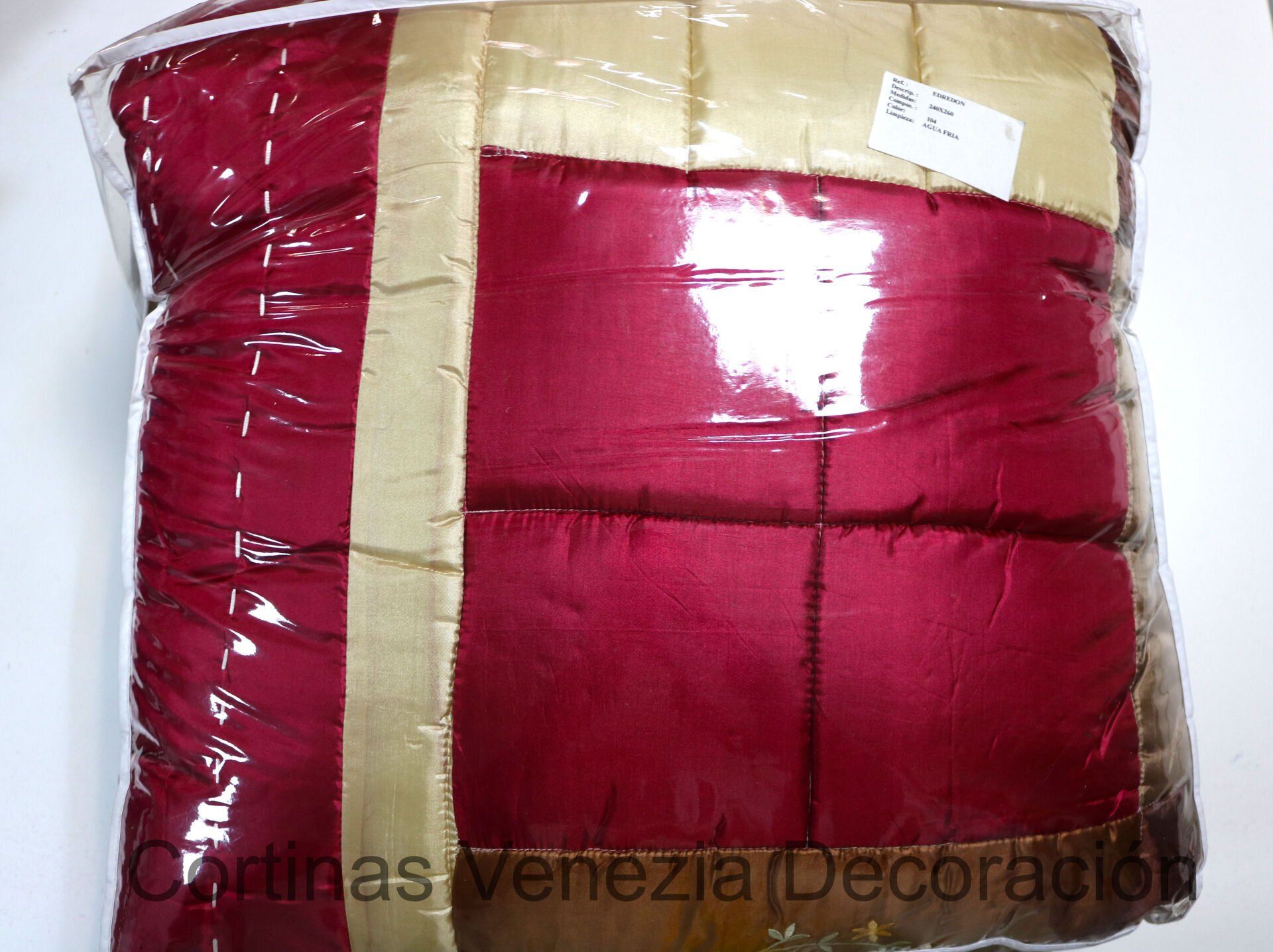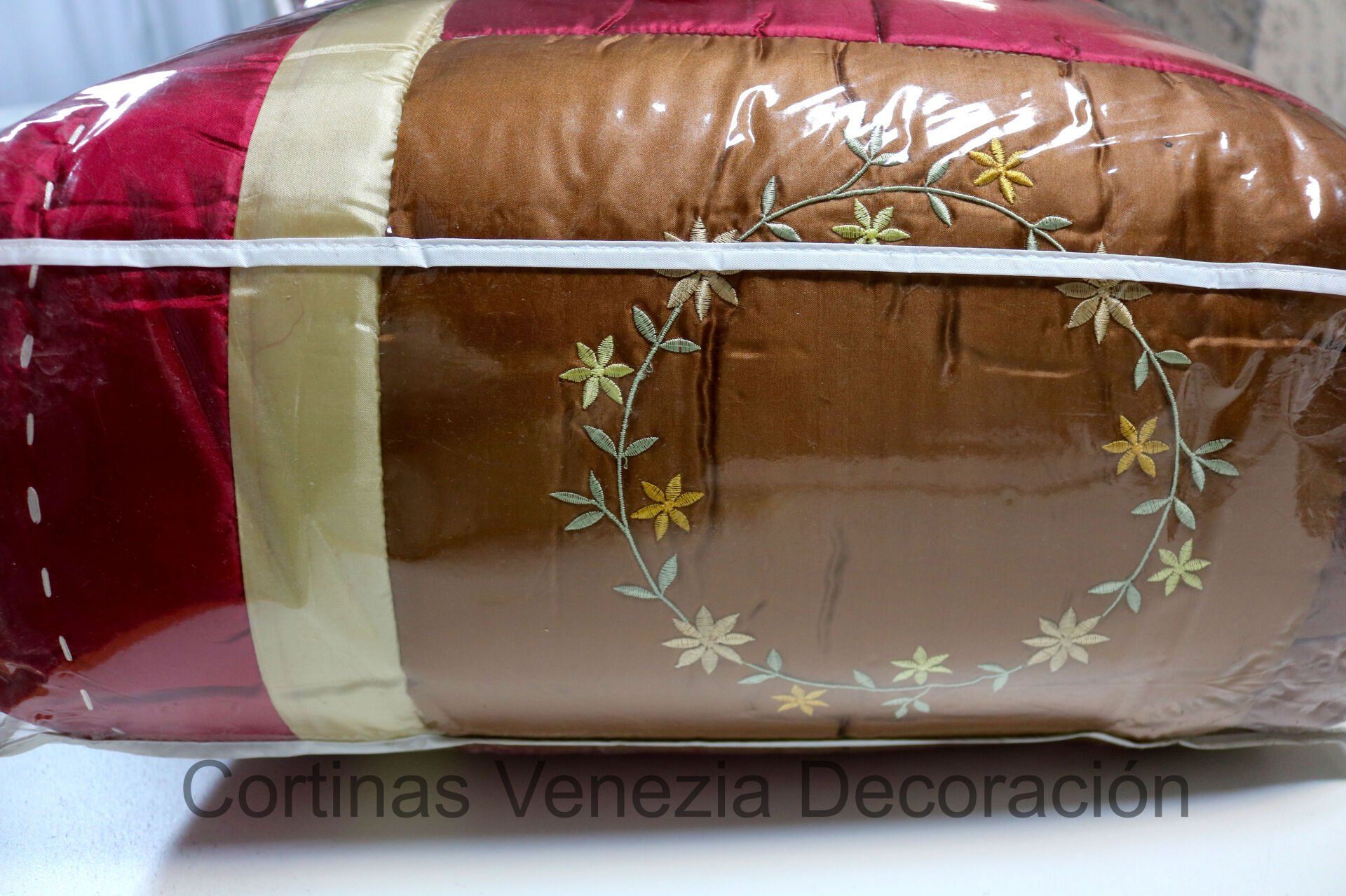 Edredón de color granate, beige y cobre, con bordado floral. De estilo clásico y elegante. Para cama de 140 - 150 cm.