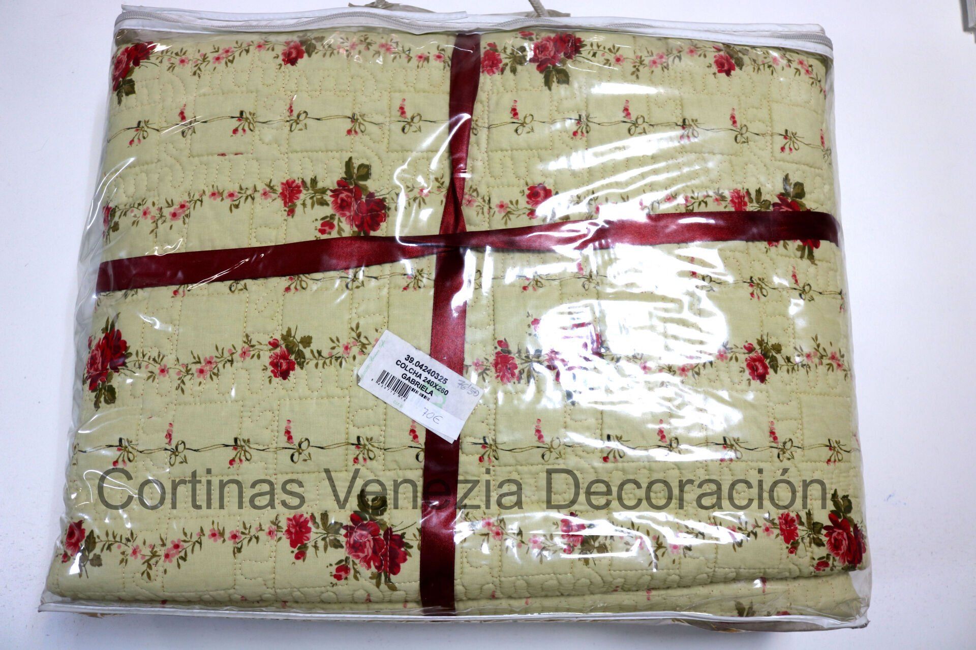 Colcha beige con estampado de flores color granate. De estilo romántico y acogedor. Para cama de 135 - 150 cm.Gastos de envío 15 €