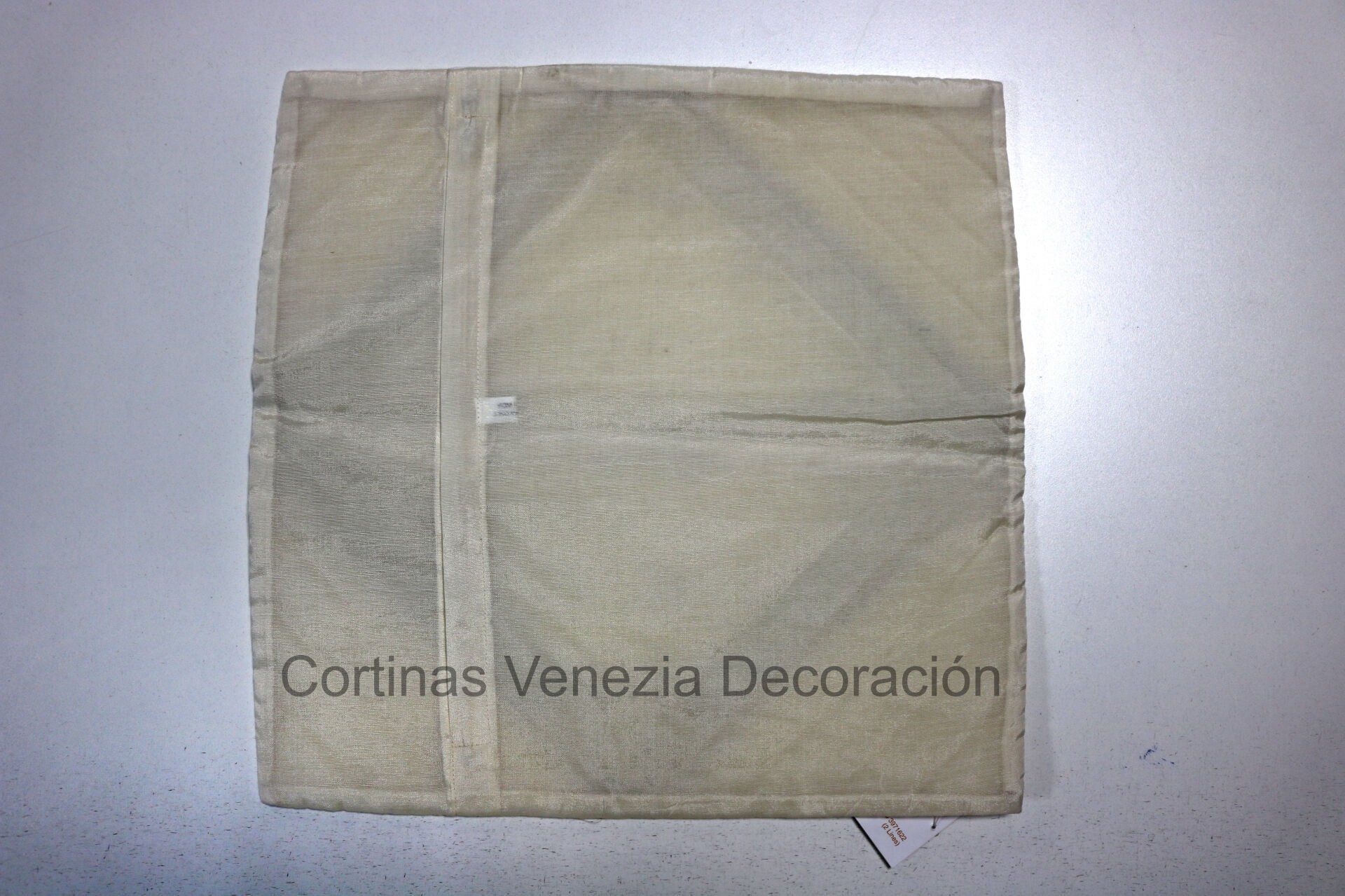 Funda de cojín de seda natural color beige. Con acolchado en la parte delantera, apliques de lentejuelas y bordados. Hecho en la india.