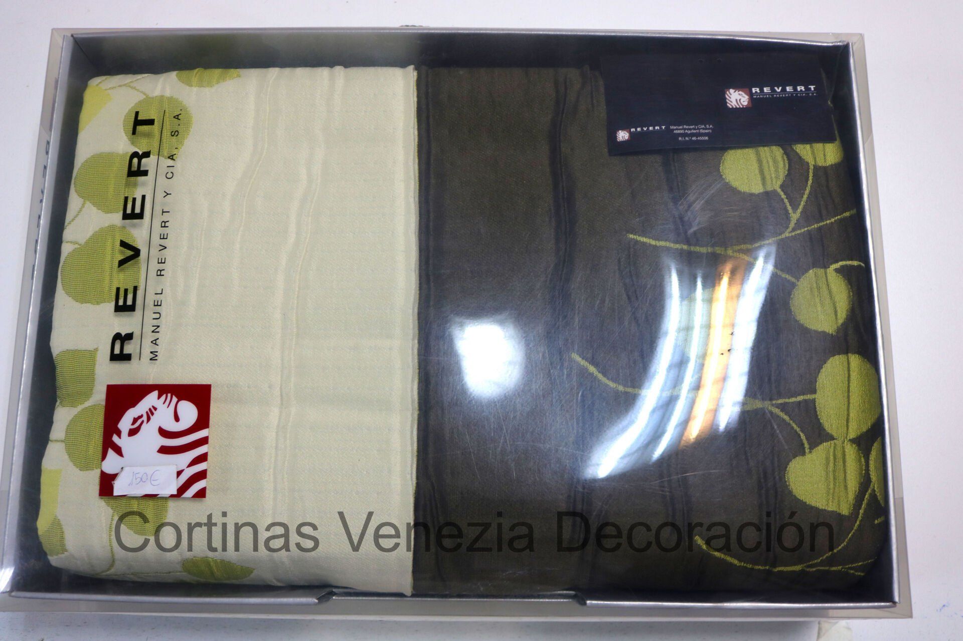 colcha tricolor con estampado de hojas. Color beige, marrón y verde. Para cama de 150 cm.Gastos de envío 15 €.
