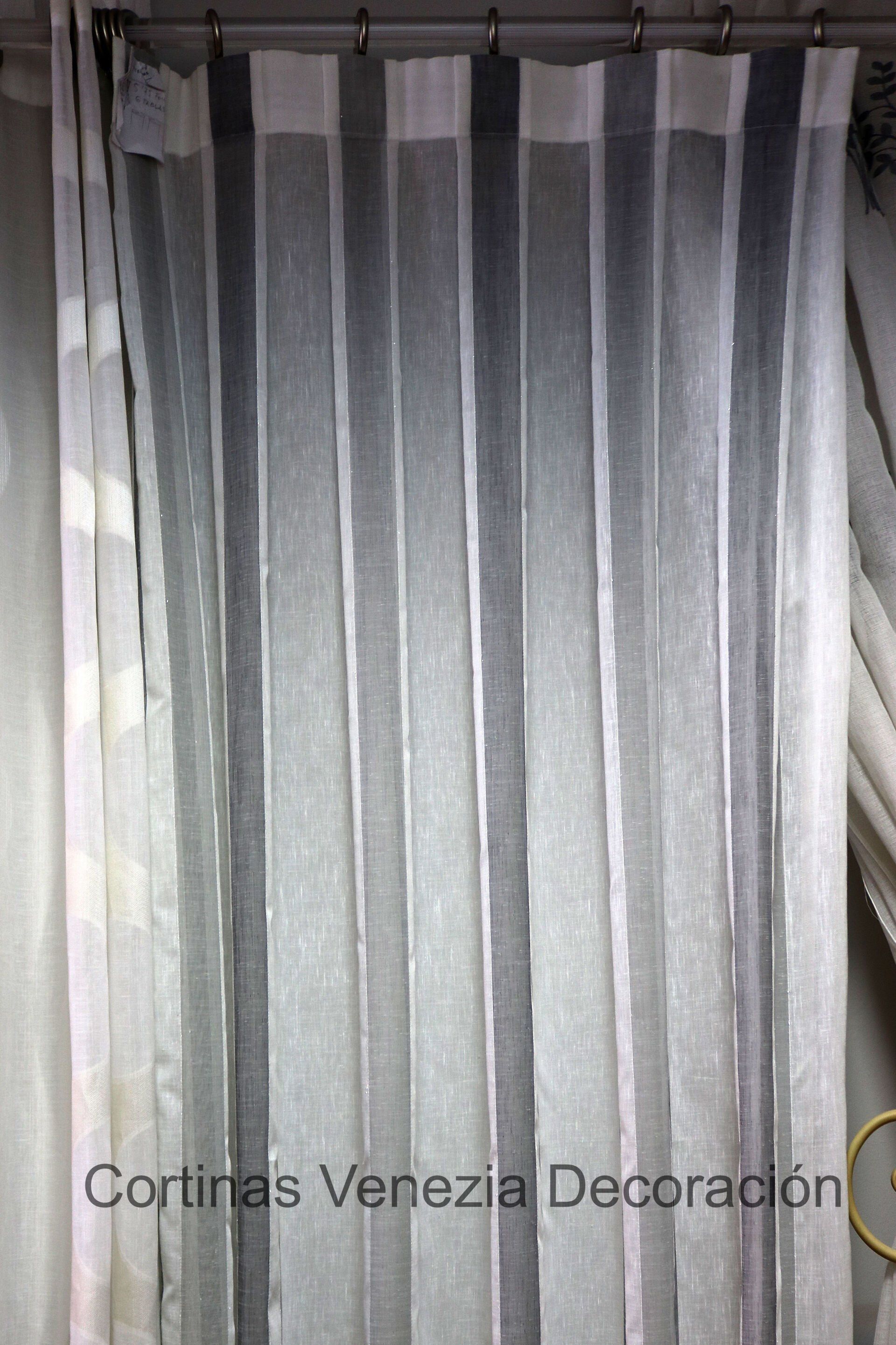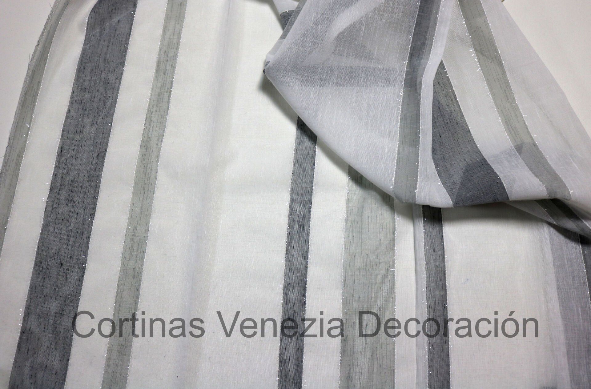 Tejido a rayas en tonos grises con ribeteado brillante en cada franja. Elegante y sencillo este tejido queda bien tanto en estor o panel como en cortina. De opacidad media.