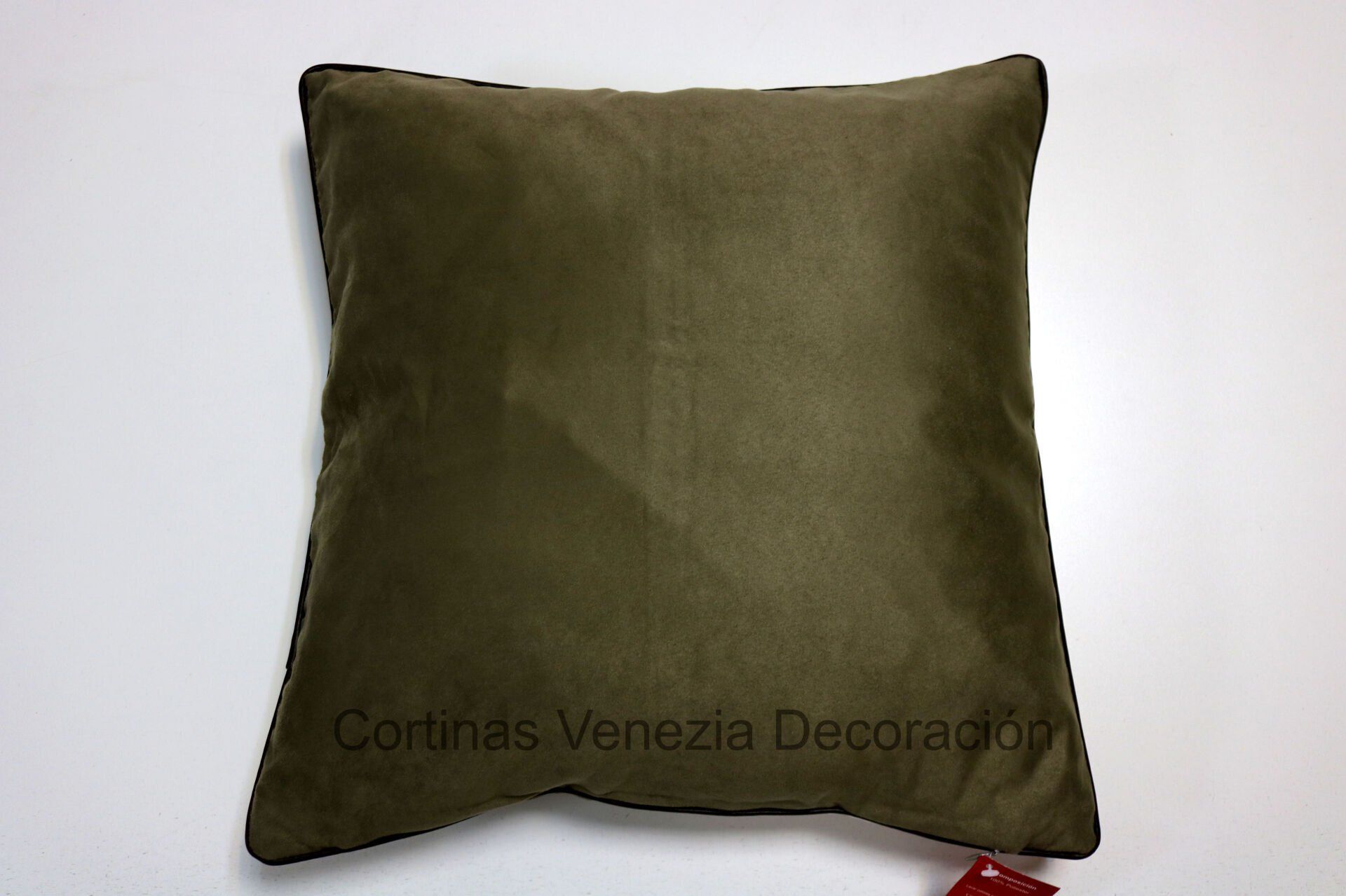 Funda de cojín de ante sintético, color beige y verde. Tamaño 45 x 45 cm